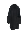 Questo lussuoso cappotto, realizzato in finissima pelle di agnello, offre calore eccezionale e un aspetto elegante. Si distingue per il suo colletto voluminoso e la chiusura con bottoni a tutta lunghezza. La combinazione di diverse texture di pelle di agnello conferisce a questo capo 1972 Desa un tocco unico. Un essenziale versatile per la stagione più fredda.