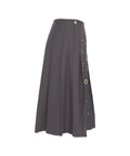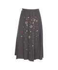Questa elegante gonna midi plissettata di 5 Progress presenta un sorprendente motivo a quadri. È impreziosita da dettagli lucidi con borchie, stelle e anelli decorativi, che le conferiscono un tocco unico. Realizzata in Italia, questa gonna colpisce per la sua precisa lavorazione e il suo taglio elegante, ideale per un'occasione speciale.