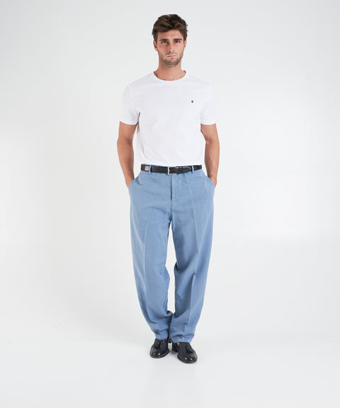 Questi pantaloni casual di Dondup sono realizzati in un pregiato misto lino-cotone e offrono un comfort ottimale per l'uso quotidiano. Presentano una classica chiusura con bottone e cerniera, pratiche tasche laterali oblique e eleganti tasche a filetto posteriori con bottone. I pantaloni si distinguono per il loro taglio dritto e la loro estetica versatile. Made in Italy, incarnano l'eccellente artigianalità del marchio.