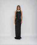 L'elegante abito lungo 'Red Carpet' di Elisabetta Franchi è un punto di forza per le occasioni speciali. Si distingue per la sua glamour applicazione di paillettes e un taglio sofisticato con scollo all'americana e dettaglio a cravatta integrato. Il taglio lungo enfatizza la silhouette femminile, rendendolo un capo di lusso. Made in Italy, incarna la massima qualità e uno stile esclusivo.