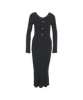 Questo elegante abito lungo di Guess by Marciano presenta un design aderente realizzato in tessuto di maglia di alta qualità. È dotato di un classico scollo rotondo e maniche lunghe. Bottoni decorativi color oro sul davanti aggiungono accenti di stile e conferiscono un tocco lussuoso all'abito. Perfetto per un look chic.