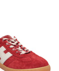 Queste lussuose sneakers Hogan colpiscono per il loro design sofisticato. Made in Italy, presentano pelle scamosciata di alta qualità e inserti in tessuto complementari, garantendo un comfort ottimale. La forma rotonda della scarpa e l'iconico logo 'H' laterale ne sottolineano lo stile distintivo. Una suola in gomma resistente completa questo modello sportivo ed elegante.