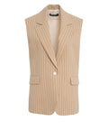Questo elegante gilet di Kaos colpisce per il suo design intramontabile a sottili righe gessate. Il classico rever a dente e le tasche a pattina sottolineano l'estetica di ispirazione maschile di questo gilet. Il modello si chiude con una pratica chiusura a un bottone e offre versatili opzioni di styling per look a strati sofisticati nel moderno contesto business. Made in Italy.