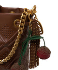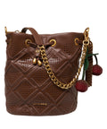 Questa elegante borsa a secchiello di La Carrie colpisce per il suo design di alta qualità in pregiata pelle. Il modello è caratterizzato da un delicato motivo traforato al laser e lucenti dettagli in metallo color oro che donano un tocco di lusso. Una pratica chiusura a coulisse e ciondoli decorativi completano con stile questo accessorio esclusivo.