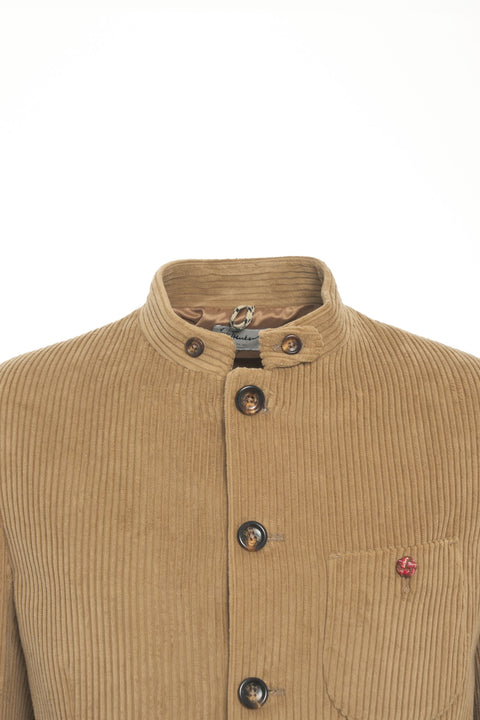 Questa giacca 'Lusandro' senza tempo di Luis Trenker si presenta in un tessuto di velluto a coste di alta qualità. Si distingue per un elegante collo alla coreana, un'abbottonatura a tutta lunghezza e tasche applicate. Una tasca sul petto aggiuntiva con un sottile dettaglio logo completa il design. Made in Italy, questa giacca unisce la sartoria tradizionale con un'eleganza casual raffinata.