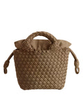 Questa borsa a mano moderna di Marrea si distingue per il suo esclusivo motivo intrecciato che conferisce una texture unica e raffinata. Realizzata in neoprene resistente, combina robustezza e leggerezza per un utilizzo quotidiano senza compromessi. Il manico intrecciato aggiunge un tocco di eleganza artigianale, mentre la pratica chiusura a coulisse garantisce sicurezza e facilità d’uso. Un accessorio versatile e di carattere, perfetto per completare qualsiasi look con stile e funzionalità.