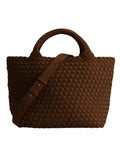 Questa borsa a mano moderna di Marrea si distingue per il suo esclusivo motivo intrecciato che conferisce una texture unica e raffinata. Realizzata in neoprene resistente, combina robustezza e leggerezza per un utilizzo quotidiano senza compromessi. Il manico intrecciato aggiunge un tocco di eleganza artigianale, mentre la pratica chiusura a coulisse garantisce sicurezza e facilità d’uso. Un accessorio versatile e di carattere, perfetto per completare qualsiasi look con stile e funzionalità.