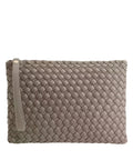L'elegante clutch colpisce per il suo design finemente intrecciato, che conferisce una texture lussuosa e un aspetto senza tempo. La sua silhouette compatta e rettangolare la rende la compagna ideale per le occasioni serali. Un pratico cinturino da polso garantisce comfort nel trasporto, mentre la sicura chiusura con zip protegge i vostri oggetti essenziali.