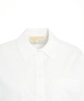 Questa blusa Michael Kors presenta un design classico con un taglio dritto. Ha un colletto tradizionale, una chiusura con bottoni completa e maniche lunghe con polsini abbottonati. Una tasca applicata sul petto sulla parte anteriore completa l'aspetto semplice ma elegante.