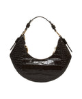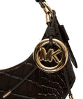 Questa borsa a mano Michael Kors presenta un'elegante forma a mezzaluna, realizzata in pelle di alta qualità con stampa rettile. Dispone di una pratica chiusura con cerniera e una tracolla regolabile per un uso versatile. Il caratteristico dettaglio logo Michael Kors color oro aggiunge un tocco di lusso al design. Un accessorio elegante per l'uso quotidiano o occasioni speciali.