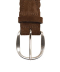 Questa elegante cintura Orciani si distingue per l'eccellente lavorazione in pregiato camoscio. Il design intrecciato elaborato conferisce al modello 'SUP' una texture unica e un carattere lussuoso. Questo accessorio è completato da una classica fibbia ad ardiglione, che garantisce una vestibilità ideale. Un pezzo versatile, Made in Italy, che riflette la massima maestria artigianale.