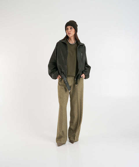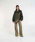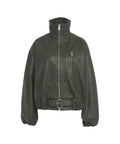 La giacca in pelle 'Lenny' di oval square colpisce per la sua pregiata pelle liscia e la moderna vestibilità oversize. Presenta un colletto alto distintivo e una chiusura con cerniera integrale. Un'ampia cintura in vita con fibbia e le maniche arricciate sottolineano lo stile casual ma lussuoso. Una tasca extra con cerniera sul petto completa il design.