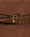 Questa lussuosa borsa a spalla è realizzata in pregiata pelle scamosciata, distinguendosi per il suo design elegante. Una tracolla regolabile impreziosita da nobili borchie e un brillante dettaglio logo le conferisce un tocco raffinato. L'ampio scomparto principale offre spazio sufficiente per i tuoi essenziali, rendendola un compagno ideale per apparizioni di stile, chiusa con una cerniera.