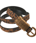 Questa elegante cintura di Pinko si distingue per il suo audace design con stampa animalier. La lavorazione di alta qualità in pelle garantisce resistenza e una sensazione di lusso. I distintivi elementi in metallo color oro con logo lettering integrato aggiungono un tocco sofisticato. Una classica chiusura con fibbia completa perfettamente l'accessorio.