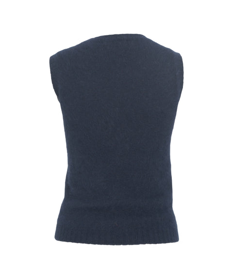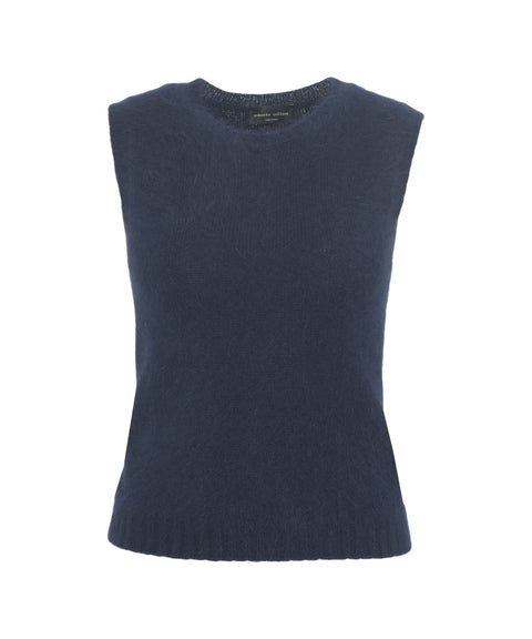 Questo elegante top in maglia di Roberto Collina è realizzato in morbido misto angora. Presenta un design senza maniche con una classica scollatura rotonda e un orlo a coste. Questo capo versatile è realizzato in Italia, mettendo in mostra una texture squisita.