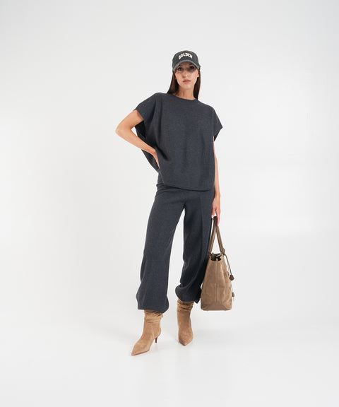 Questi pantaloni palazzo Semicouture sono realizzati in morbida maglia, offrendo un comfort ottimale. Il loro design fluido con gamba ampia crea una silhouette elegante e lussuosa libertà di movimento. Lo stile minimalista e l'alta qualità artigianale li rendono un essenziale versatile per look casual raffinati.