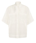 Questa elegante blusa di Solotre si distingue per la sua alta qualità in un pregiato misto cotone e seta. Il modello è dotato di un distintivo collo a scialle da annodare e pratiche tasche sul petto. Made in Italy, il design unisce una raffinatezza senza tempo a un comfort moderno. Una chiusura con bottoni e maniche corte completano il look lussuoso.